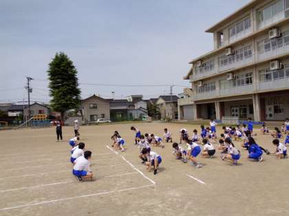 50m走のタイムを計りました。1年間の成長を実感したり、さらに力を伸ばしたりしようと、意欲を高めていました。