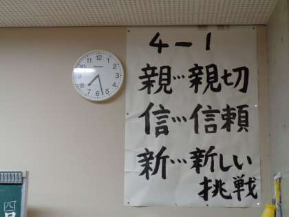 クラスの学級目標が完成しました。自分たちでこんな教室にしたいと意見を出し合い、一生懸命考えました。上学年として大きく成長したいという願いが込められています。