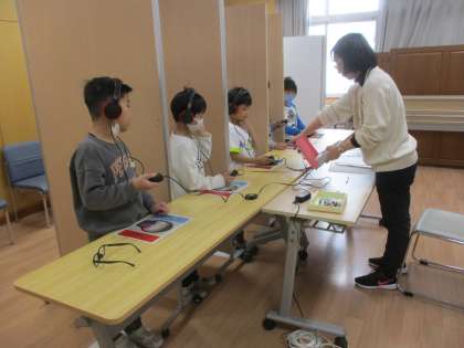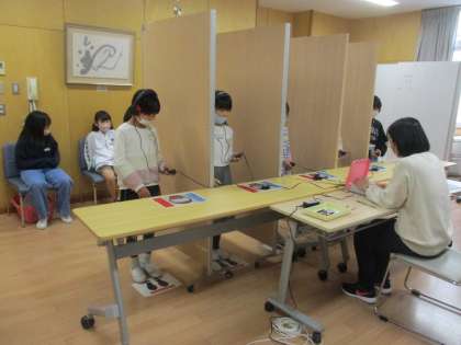 年度始めは、いろいろな検診があります。今日は聴力検査を行いました。検査の仕方を静かに聞き、正しく受けることができました。
