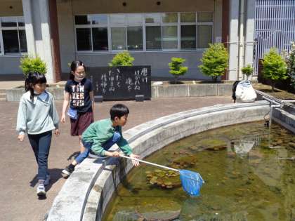 実際に生き物を見たり触ったりしながら春の生き物の様子をじっくり観察しています。