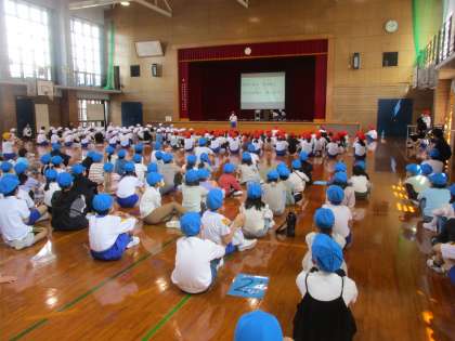 いよいよ色団が決まり、結団式が行われました。式では、運動会のスローガンが発表され、各団の意気込みが伝わってきました。