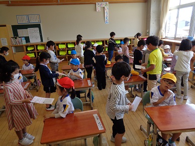 2年生から1年生に入学お祝い集会の招待状が届きました。1人1人に手作りの招待状です。子供たちは、集会の日をとても楽しみにしています。