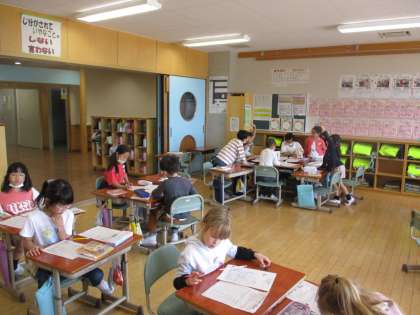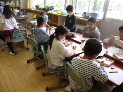 自分の住む町について、同じ町内の友達と調べてきたことを情報交換しました。また、学習の中で校区地図に印を付ける作業もしました。難しさを感じつつ、友達と確かめ合ったり、食い違いに話し合ったりしながら学習を進めていく姿に、学び合いを感じました。
