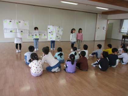 昨年度末から企画していた、1年生の入学を祝う集会を行いました。2年生の子供たちは1年生に「西田地方小学校に来てよかった。」と思ってもらうために、クイズを考えたり一緒にできる遊びをしたりし、楽しく過ごしました。集会の最後には、学校地図と朝顔の種をプレゼントし、「これからよろしくね。」という思いを伝えました。
