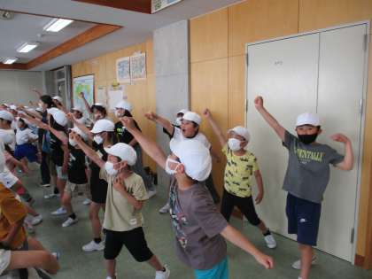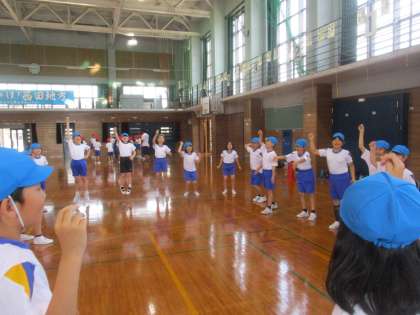 運動会の「応援合戦」で、3年生なりに大きな声を出したり、振り付けを大きくしたりしながら練習に取り組んでいます。自分たち一人一人ができることに、全力を尽くしている子供たちです。
