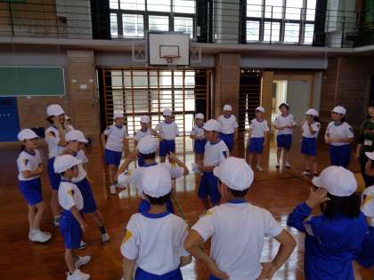 団員の前に立って指示を出したり、全員が輪の中に入れるよう声をかけたりするなど、上学年としてリーダーシップを発揮していました。
