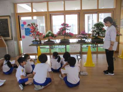 地域の方が育てられた「サツキ」が児童玄関に飾ってあります。「きれいだね〜」とつぶやきながら、色とりどりのサツキに見入っている3年生でした。