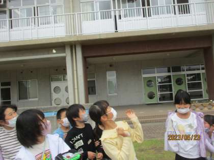 いよいよ待ちに待ったモンシロチョウとの出会いです!朝、教室に入った子供が、「あっ、モンシロチョウになっているよ」と教えてくれました。「えっ、見せて見せて」「かわいい!」みんな興奮気味です。午後から、みんなでグラウンドに出てモンシロチョウを自然に返しました。