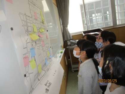 総合的な学習の時間では、西田地方のたからものを見つけるために探検の計画を立てました。「西田地方にしかないものを見つけたいなぁ」「商店街の人たちの様子や道路の様子など見てこよう」広い視野でたからものを見つけにいきたいです。