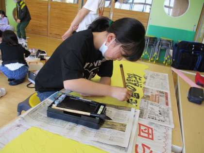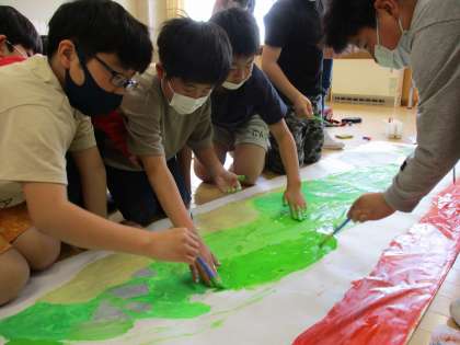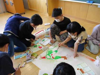 学級目標のデザインが決まり、役割を分担してクラス全員の力でつくり上げました。一人一人の思いのこもった作品になりました。