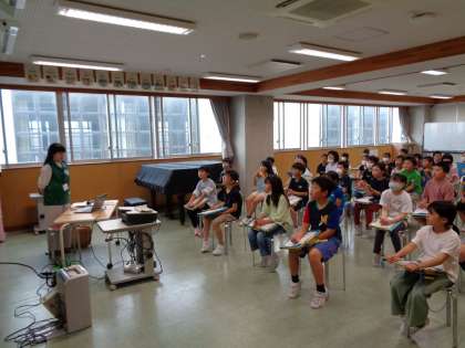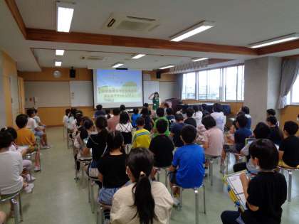 地球温暖化等、現在の地球が抱えている問題について話を聞きました。子供たちは自分にできることを考えて、これから様々な活動に取り組んでいこうと考えています。