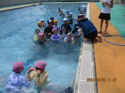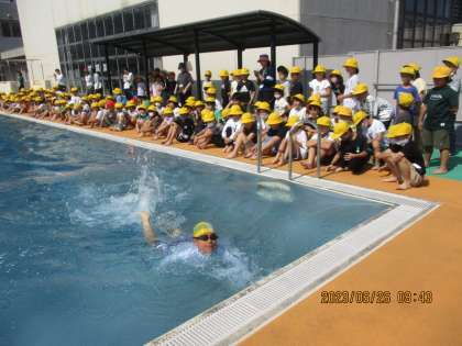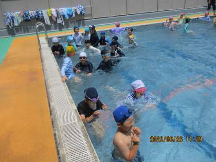 楽しみにしていたプール開きが行われました。式では、安全で楽しいプール学習にするために3つの大切な約束を確認しました。「プールでは絶対に走らない」「プールには絶対に飛び込まない」「プールでは絶対にふざけない」子供たちは真剣に話を聞いていました。その後、プールに入った子供たちから「冷たくて気持ちいい!」「久しぶりのプールは嬉しいなぁ」と歓声が上がりました。しっかり自分の目当てをもって、楽しみたいと思います。
