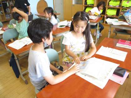 今はないけれど、「あったらいいな」と思うものを考えました。今日は、ペアで自分の考えたものについて説明し合ったり質問をしあったりしました。2人で話し合う中で、自分の考えたものについて、より詳しく考えることにつながりました。