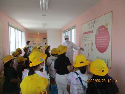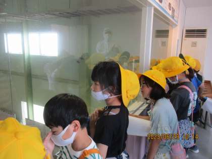 楽しみにしていた工場見学へ行ってきました。ささら屋では、せんべいが出来上がるまでの工程や、作業の様子などを見学しました。安心安全に私達に届けるために、様々な工夫があることを教えていただきました。