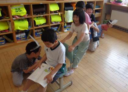 グループごとに役割を決め、音読にあった動きになるように練習しました。