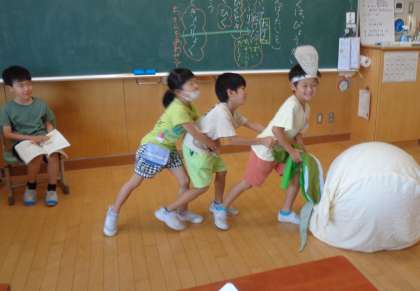 国語科の学習で「おおきなかぶ」の音読発表会を行いました。