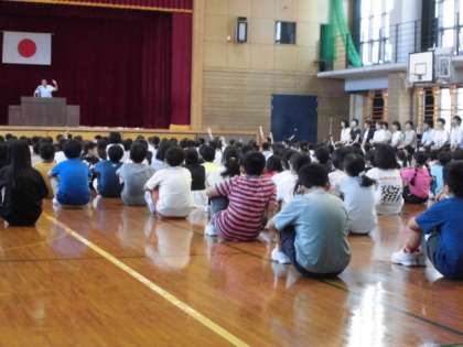 校長先生より、礼儀・正義・勤勉・立志のお話をしていただきました。子供たちは、真剣な眼差しでお話を聞いていました。
