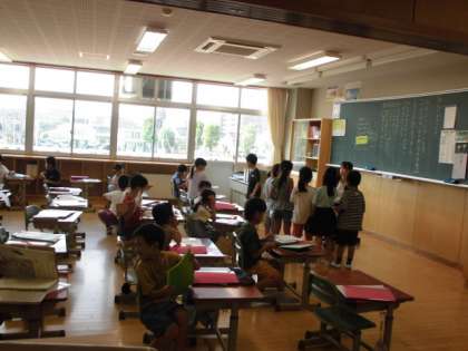 夏休みの思い出を話したり、夏休みにがんばった宿題などを提出したりしました。