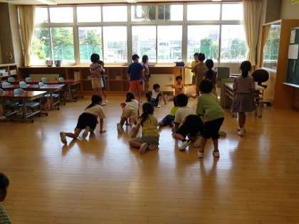 学級の時間は、みんなでやりたいことを考えて、だるまさんがころんだをすることにしました。子供たちは、動作をぴたっと止めることがとても上手でした。