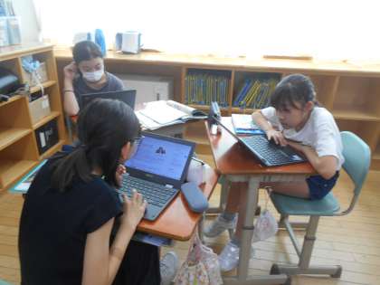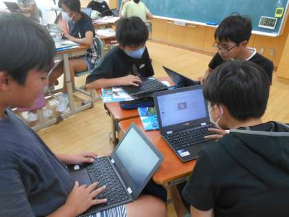 2学期は主に歴史の学習を進めていきます。今回は平安時代について、教科書を読んだ後、自分で気になるテーマについて調べ学習をしています。平安時代の十二単の重さを知り、「重くて肩がこりそう」「そんな重いの着られない」と当時のくらしについて驚きながら学習に取り組んでいました。