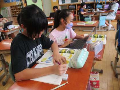 子供たちは理科の学習で栽培していた植物の中で、実ができたものとできなかったものがあったことが気になり、話合いの場をもちました。実がなるためには花や花粉が鍵を握っていると考えた子供たちは花と実の関係を詳しく調べることにしました。子供たちは実がなる謎を解明できるでしょうか。