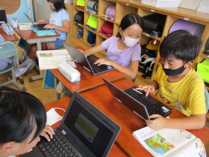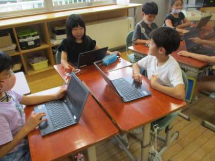 国語の学習で、山小屋で3日間すごすなら何をもっていくかについて、グループで話し合いました。自然に触れあうことを目的とし、何をしたいかを考えて、持ち物は五つにすることが条件です。みんなて話し合い、考えをまとめていきました。