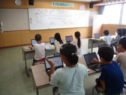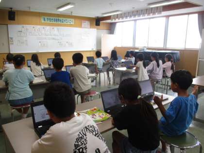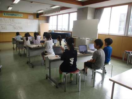 8分音符のリズムを組み合わせて、おまつりの音楽をつくる学習を始めました。「楽しい音楽にしたい」「わっしょい!と弾むような音楽にしたい」「元気な音楽にしたい」など、それぞれに思いをもって音楽つくりに取り組んでいます。