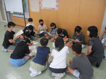 学習発表会の台本や役割分担も決まり、早速、場面毎に集まって台本の読み合わせをしました。声だけでも伝わる表現を目指して何度も練習する姿が見られました。これからの成長が楽しみです。