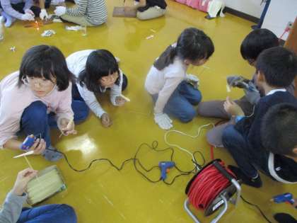 宿泊学習のお土産にスプーン竹とんぼを作りました。