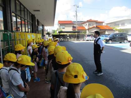 楽しみにしていた校外学習、第一弾が始まりました。今日は、アルビス布瀬店へ見学に行きました。爽やかな秋晴れの中で、元気よく出発しました。「よく買い物に行くところだから、嬉しいな」「バックヤードを見学させてもらえるって、なかなかないね、楽しみだな」と話しながら歩きました。アルビスに着くと、入り口や店内の様子等、店長さんの話を聞きながらどんな発見があるか見つけました。