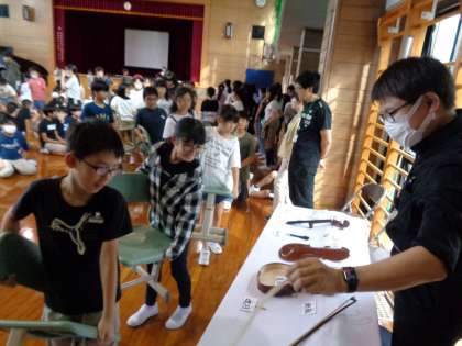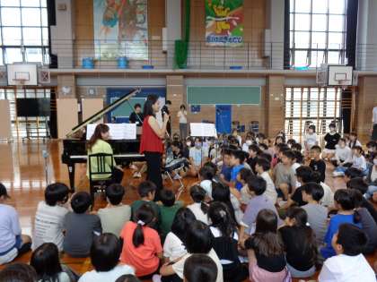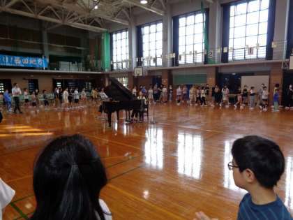 ヴァイオリニストとピアニストの方に演奏を聴かせていただきました。子供たちも演奏に合わせて体を動かして、リズムや表現を味わいました。楽器の秘密も聞かせてもらい、とても楽しい時間を過ごしました。
