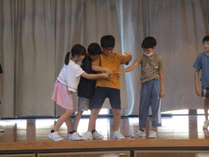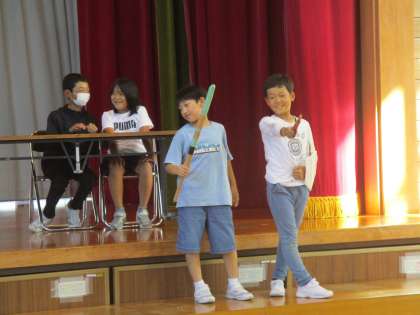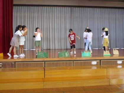 学習発表会に向けて、一段と練習に熱がこもってきています。体育館を使っての場面練習や通し練習では、立ち位置や動き等を確認しながら、場面の様子や人物の気持ちがより伝わるように工夫を凝らしていました。