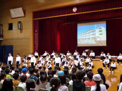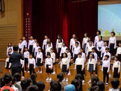 今日は各学年の発表を見合いました。4年生で、発表後に振り返りを行うと「緊張した」「大きな口で歌えた」「次も頑張りたい」など、たくさんの声を聞くことができました。子供たちは、本番に向けて細かいところを一つでも良くしていきたいと考えています。
