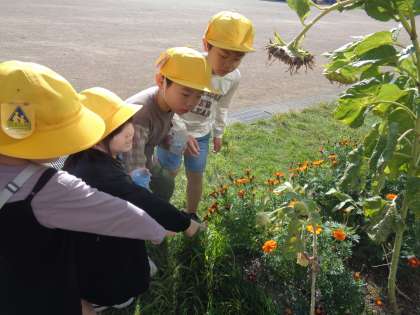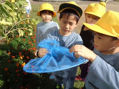 生活科では、校庭で秋を見つけて楽しんでいます。