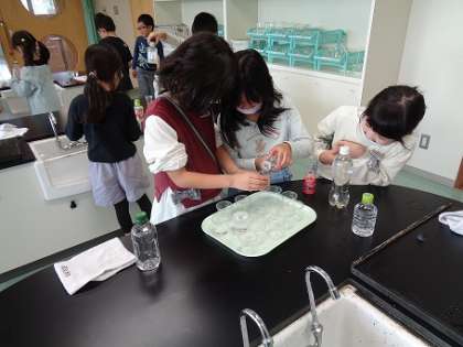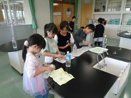 身の回りにあるペットボトルに入る水の量を、コップを単位として「いくつ分」で表す活動をしました。子供たちは、ペットボトルの形から多さやコップ何杯分になるかを予想しながら学習を進めていました。