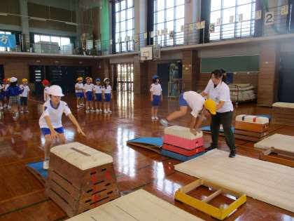 富山市スポーツ協会から指導員の方が来校され、、跳び箱運動の授業がありました。開脚跳びを中心に、きれいにかっこよく跳ぶこと、着地をしっかり決めることなど、ポイントをおさえて練習に取り組みました。終わりには「五段の跳び箱がとべた」「跳び越せなかったけど楽しかった」「家で練習してみる」など、達成感でいっぱいの子供たちでした。
