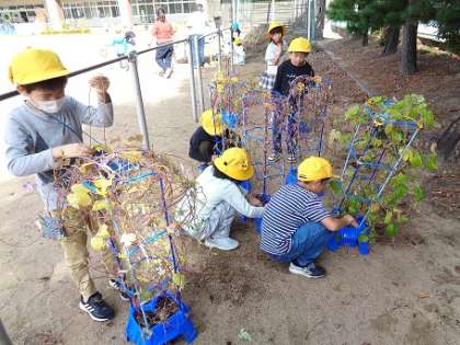 5月から大切に育ててきたアサガオ。今日は、そのアサガオを抜いてリースの土台づくりをしました。根がしっかりと張っていて、つるも長く伸びていました。根気強くていねいにほどきました。どんなリースが完成するのか、楽しみです。