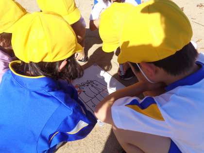 〜1年生〜ボールけりゲームの作戦を考えたよ!
