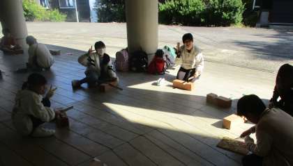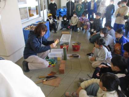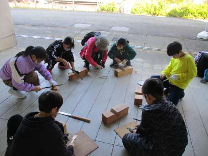 竹スプーン作りに挑戦しました。のこぎりで竹の余計な部分を切り、小刀で形を整え、やすりで表面を滑らかにしていきました。形を整えるが思ったよりも難しく、長い時間をかけて削っていきましたが、世界に一つしかないオリジナル竹スプーンを作ることができました。