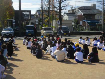 今回の避難訓練は、消防署の方に避難の様子を見ていただきました。休み時間中の訓練とあって子供たちは、さまざまな場所に移動していました。出火場所や避難コース、避難場所の放送を落ち着いて聞き、「お・は・し・も」を守って真剣に訓練することができました。学級での振り返りでも、前回の反省を生かし、多くの子供たちが静かに避難することができたようです。
