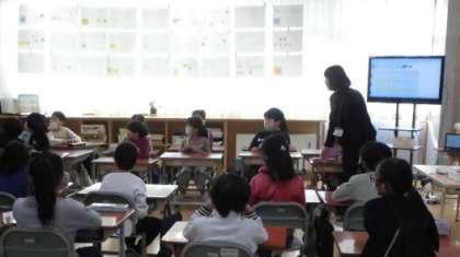 子供たちは、少し緊張しながらも、友達と考えを交流したり真剣に問題に取り組んだりしていました。下学年の様子です。