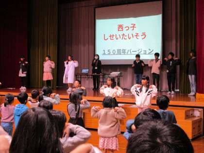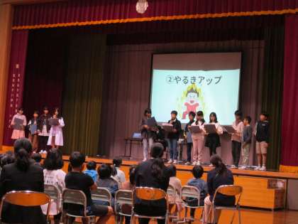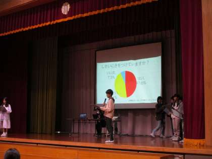 学校保健委員会で「姿勢」と「手洗い」について全校児童や保護者の方に発表を行いました。4月から、西っ子の健康を守るためにはどんなことに気をつけたらよいのかを話し合い調査したり、富山市スポーツ協会の先生から話をお聞きしたりしながら、内容を考えました。また、姿勢体操も練習し、みんなの前で堂々と伝えることができました。もっと姿勢体操を広めていきたいと考えている保健委員の子供たちです。