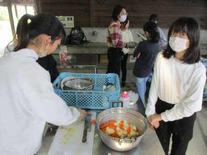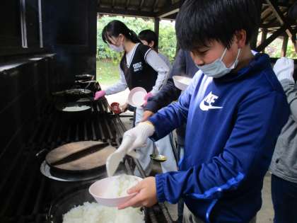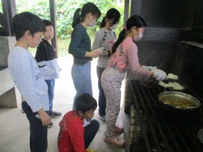 2日目は野外炊飯でカレーをつくりました。班ごとにおいしいカレーの作り方を調べ、工夫する姿が見られました。自分たちでつくったカレーの味は格別でした。