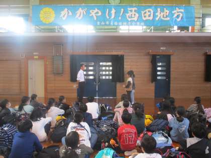 帰校式では、無事西田地方小学校に到着したことを校長先生に報告しました。最後まで5年生らしく元気いっぱいに宿泊学習を終えることができました。