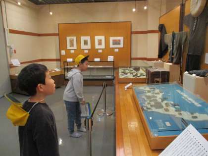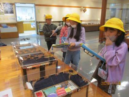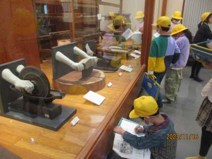 300年の歴史を持つ「富山売薬」に関する資料がたくさん保管してありました。なぜ富山の薬が全国に広まったのか、薬はどうやってできるのかなど初めて知ったことがたくさんありました。昔の薬箱がたくさん展示され、今の薬箱との違いをよく観察していました。子供たちは「薬は昔も今も大事なんですね」と関心していました。