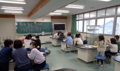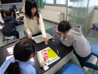 空気と水の体積の変化の実験をしました。実験用具も正しく使い、正確に実験しようと心がけています。