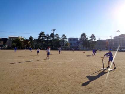 体育の学習ではティーボールをしています。守備位置を工夫したり、強い打球を打つための打ち方を考えたりするなど、各チーム作戦を立てて試合しています。