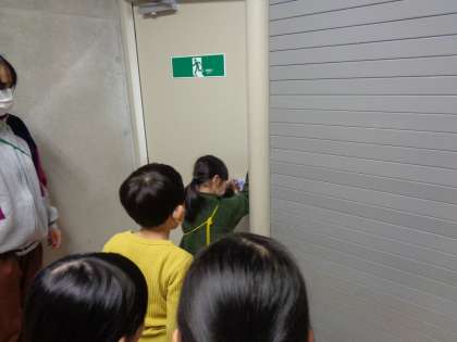 12月8日(金)に防火扉を閉め、防火シャッターを下ろしての避難訓練を行いました。防火シャッターの動作確認を行うとともに、子供たちは実際に防火シャッター横の非常扉を押し開けて通る訓練を行いました。また、子供たちは、防火扉、防火シャッターが閉まった校舎の様子を理解したようでした。
