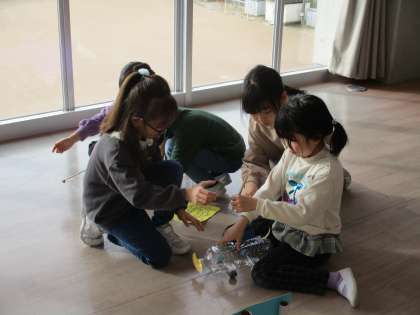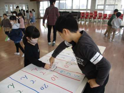 1年生を招待して、動くおもちゃランドを開きました。各コーナーでは、1年生に優しく遊び方を教えたり、一緒にやってみたりする2年生の姿が見られました。1年生から「楽しかった。」という感想を聞いて2年生はほっとしたような笑顔になっていました。計画を立てて、たくさん工夫を凝らしたおもちゃで遊んでもらうことができて嬉しかったようです。