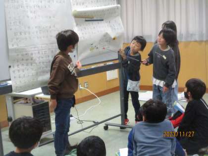 総合的な学習の時間では、「西田地方のたからものを見つけよう」をテーマに様々な疑問や関心をもって調べ学習をしました。調べたことに合う写真やイラストを添えて、クロームブックや模造紙に分かりやすくまとめて発表しました。